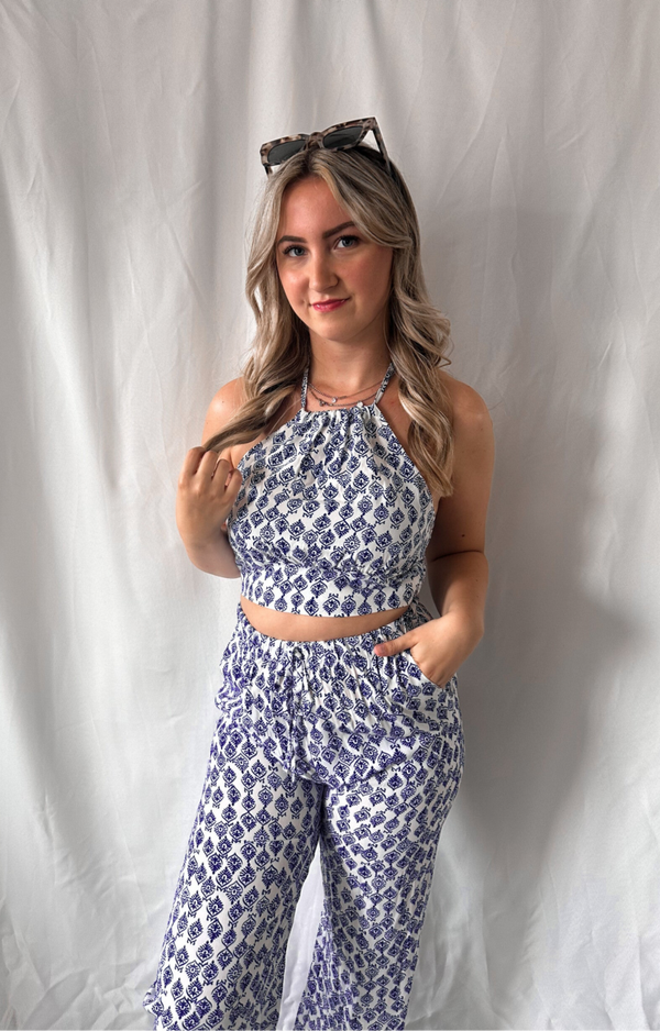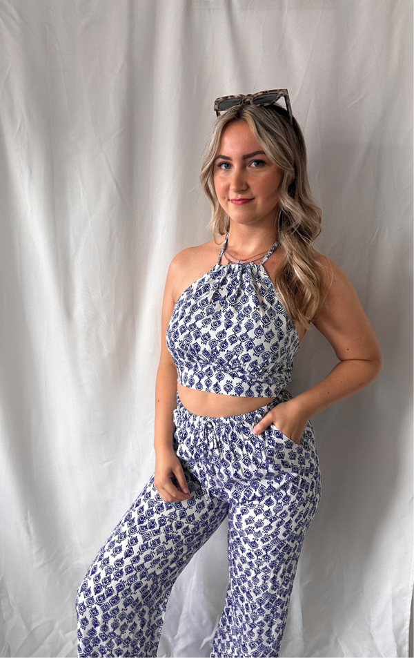 Dit super leuke setje is echt een musthave in jou kast! De perfecte outfit voor op vakantie! Dit setje komt met de top en de broek. Heb je iets bredere bovenbenen? Dan raden we een maatje groter aan. De broek valt iets langer