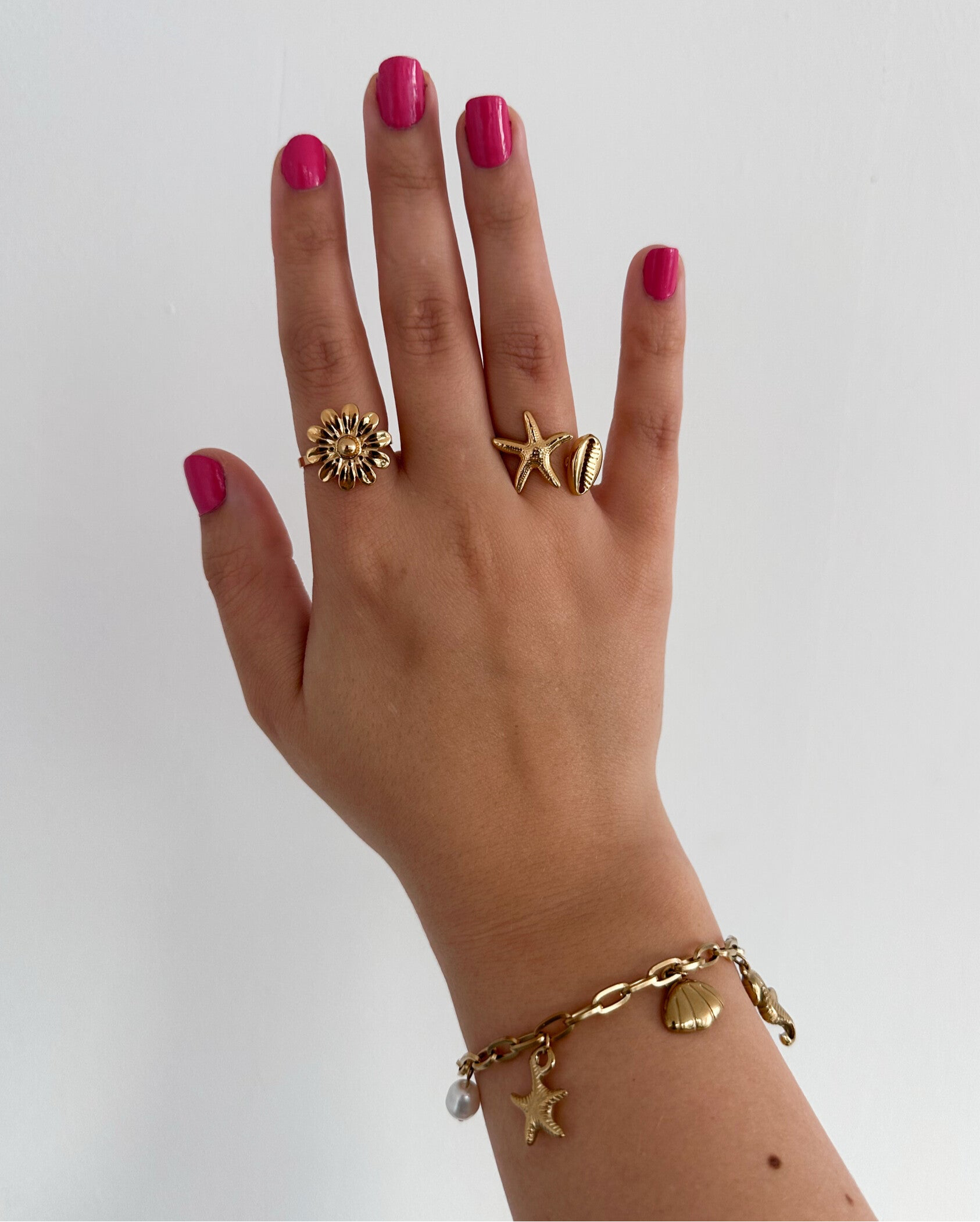 Hoe schattig is dit ringetje! Helemaal in de beachy vibes! Het is gemaakt van Stainless steel en verkleurd dus niet. Ook is het ringetje verstelbaar zodat het om elke vinger past.