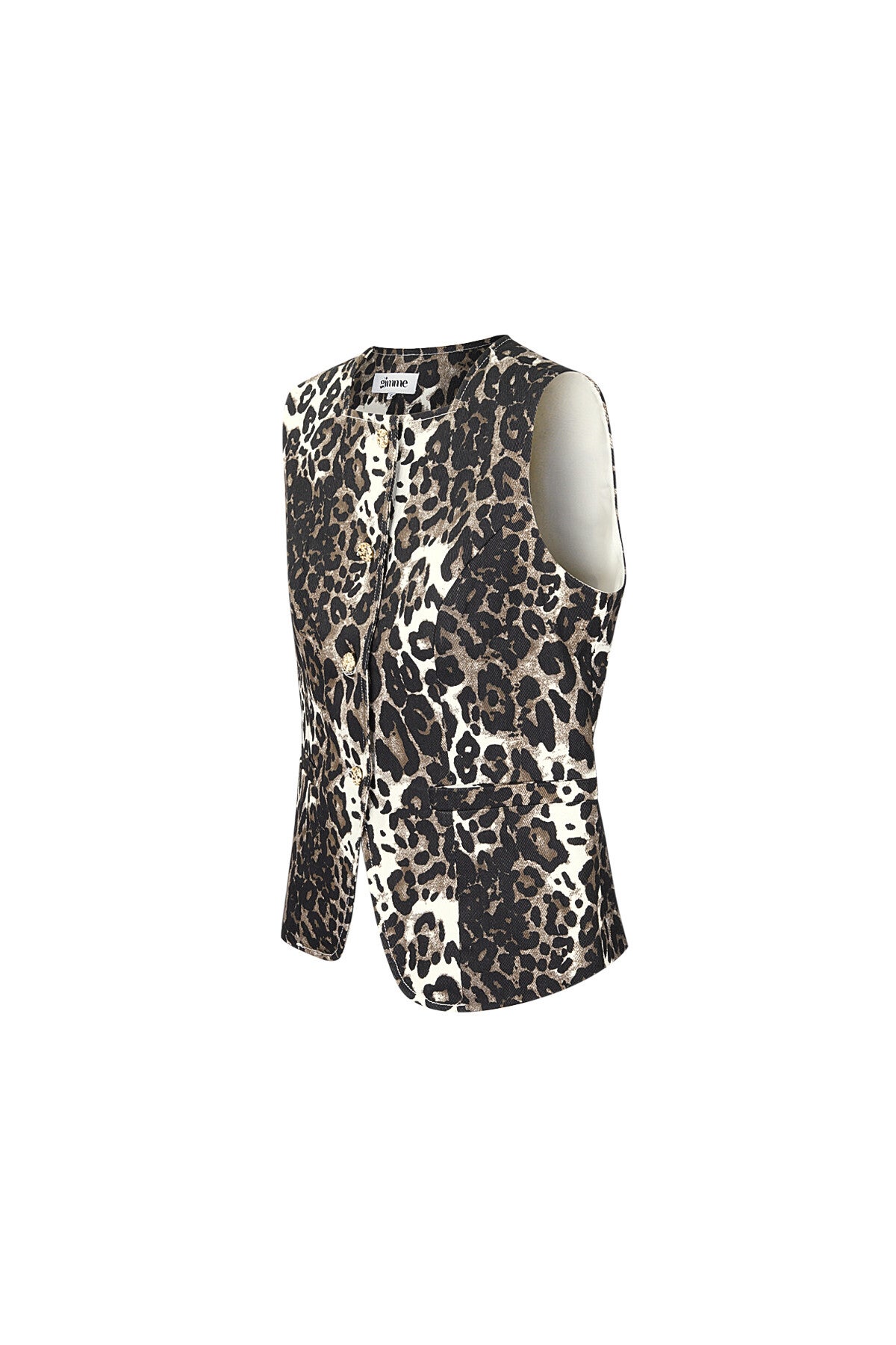 Dit giletje is heel leuk op een spijkerbroek of een leuke short. Het heeft een panter print en prachtige knopen! De top is van een denim stof en valt op maat.