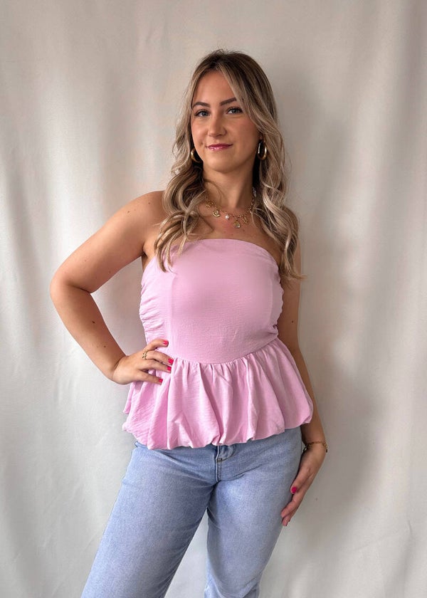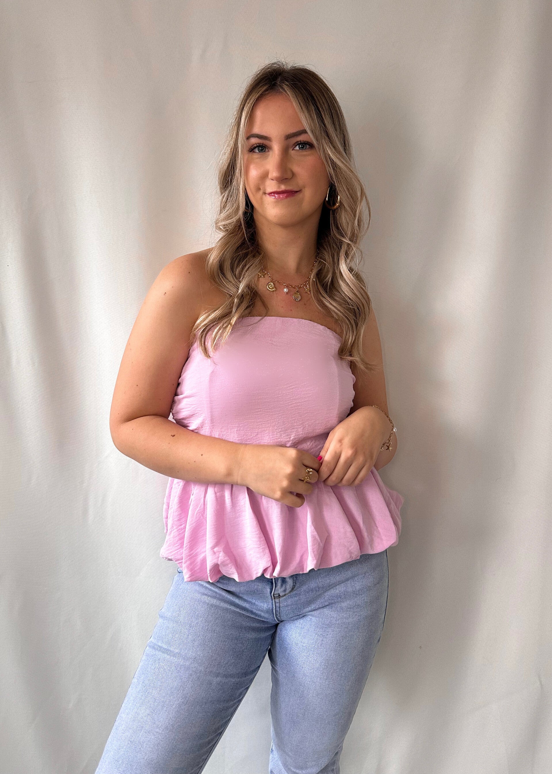 Hoe cute is dit super leuke summer topje! Een mega mooie tube top met aan de onderkant een ballon lookje. De top is strapless en er zit een anti-slip bandje aan de binnenkant. Ook verkrijgbaar in het geel.