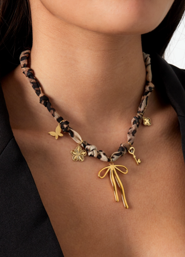 Hoe schattig is dit kettinkje! Het is gemaakt van stof en van een Stainless steel kettinkje. De ketting is 38 cm lang en heeft een verlengstukje van 5 cm.